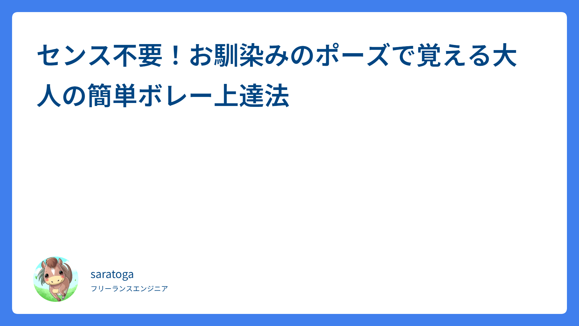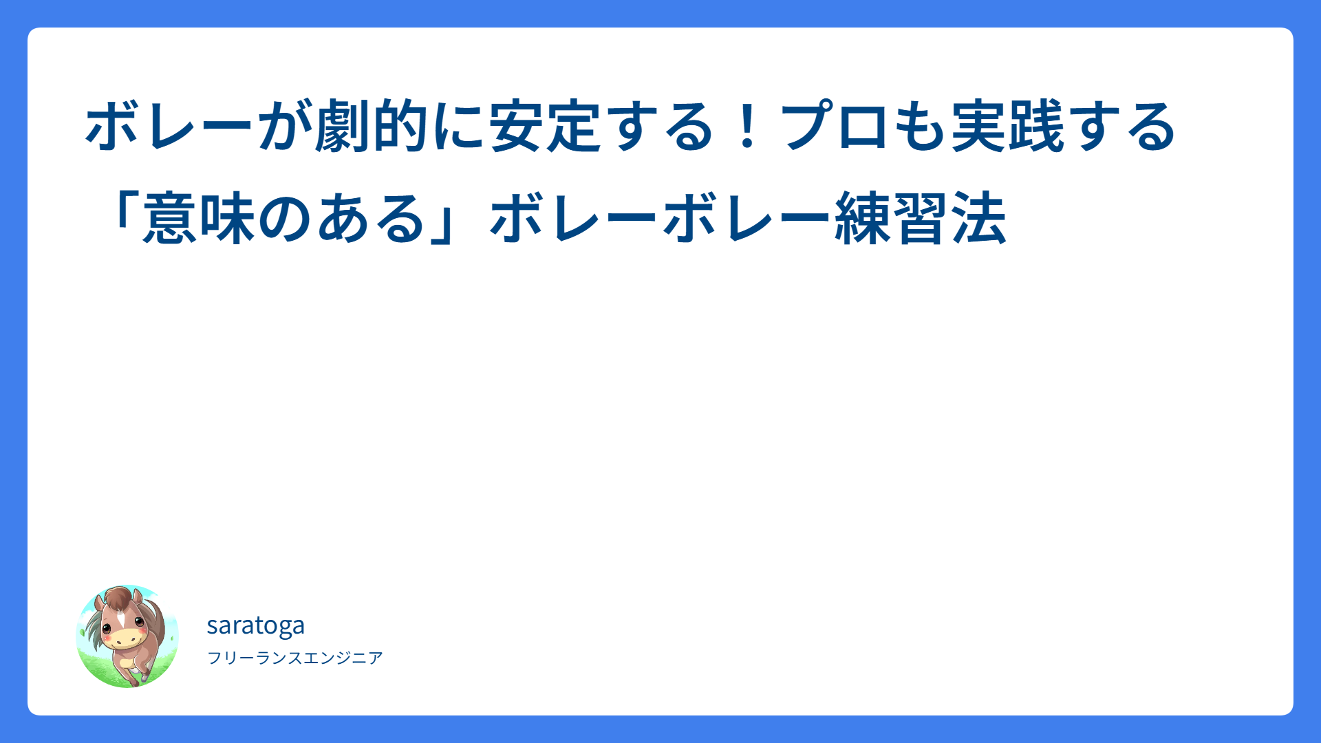 センス不要!お馴染みのポーズで覚える大人の簡単ボレー上達法 2026.02.15 ボレー saratogax サラトガ牧場 ボレーが劇的に安定する!プロも実践する「意味のある」ボレーボレー練習法 2026.02.15 ボレー saratogax サラトガ牧場 【鉄壁の守り】相手に「打つところがない!」と思わせる平行陣の上達ステップ 2026.02.14 戦術(ダブルス、ポーチ) saratogax サラトガ牧場 テニス上達の鍵!手首の角度(背屈)は作るもの?勝手にできるもの?プロが教える理想の使い方 2026.02.13 ストローク saratogax サラトガ牧場 フォアハンドが詰まる原因はこれ!打点の近さを一瞬で解決する「ボールへの入り方」の極意 2026.02.13 ストローク saratogax サラトガ牧場 テニスで「ボールとの距離」が取れない原因はこれ!90%の人ができていない解決フットワーク術 2026.02.12 ストローク saratogax サラトガ牧場 【脱・初心者】なぜあのペアは崩れない?強い平行陣が隠している「3つの秘密」を徹底解説! 2026.02.12 戦術(ダブルス、ポーチ) saratogax サラトガ牧場 【2026年版】AI開発ツールの新常識:ChatGPT-codex, Opus 4.6, Cursorをどう使い分けるか 2026.02.11 AI(Tips) saratogax サラトガ牧場 【保存版】両手バックハンドが劇的に楽になる!プロが教える3つの脱力コツ 2026.02.11 ストローク saratogax サラトガ牧場 【テニス】ダブルスで追い込まれた時の配球術|「攻めさせない」守備の極意 2026.02.11 戦術(ダブルス、ポーチ) saratogax サラトガ牧場 もっと見る