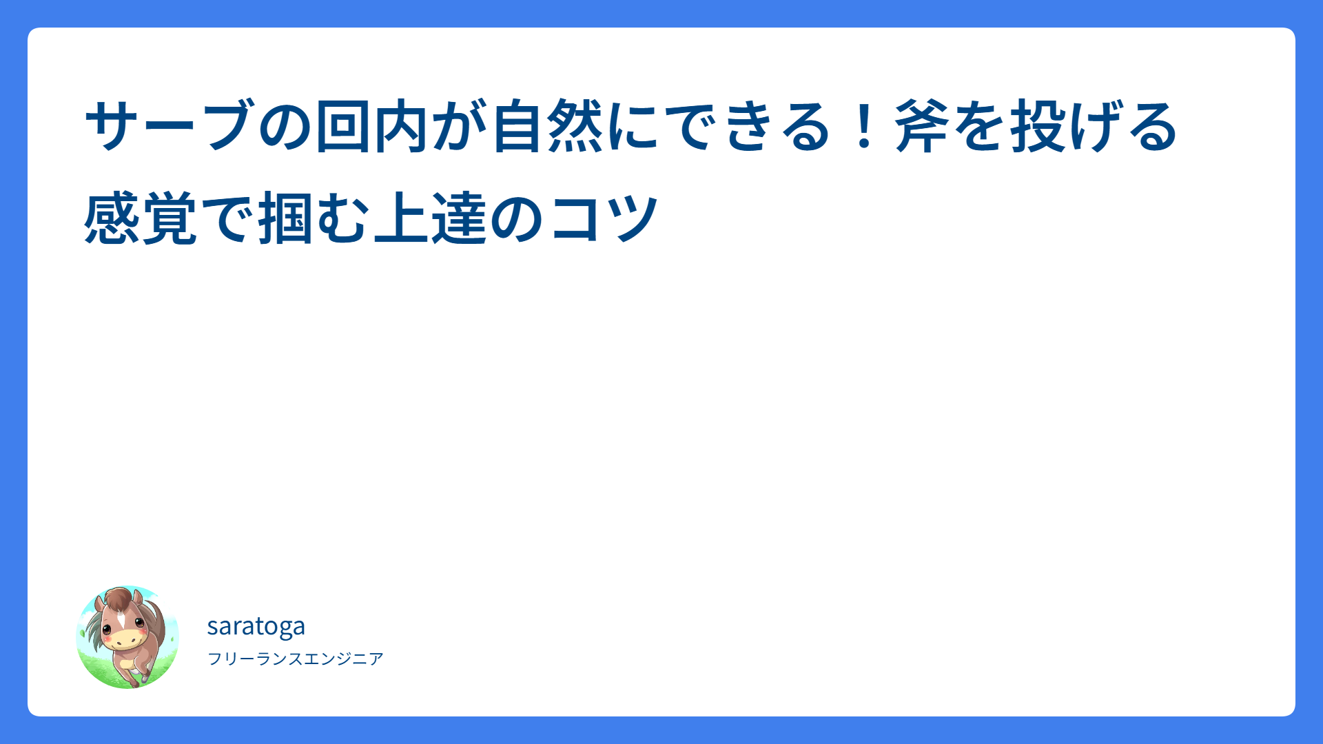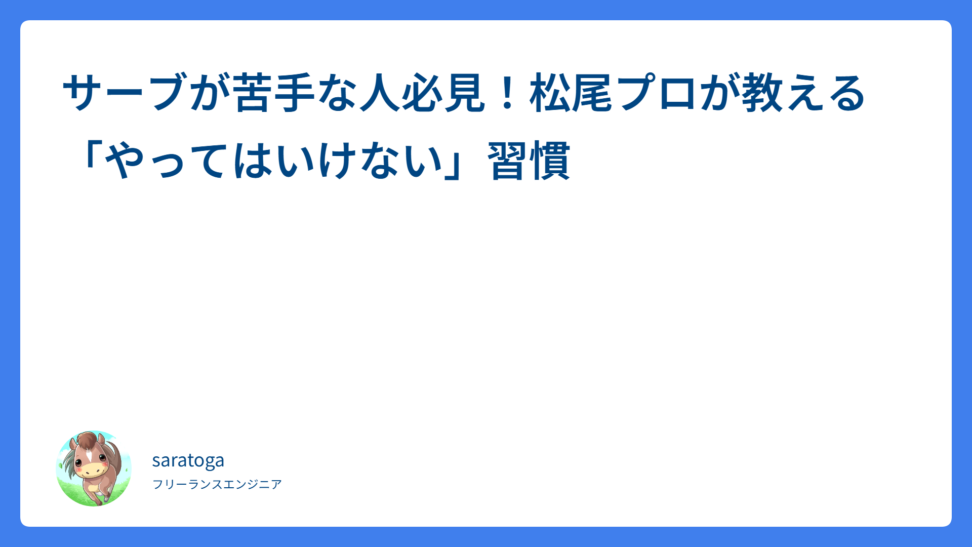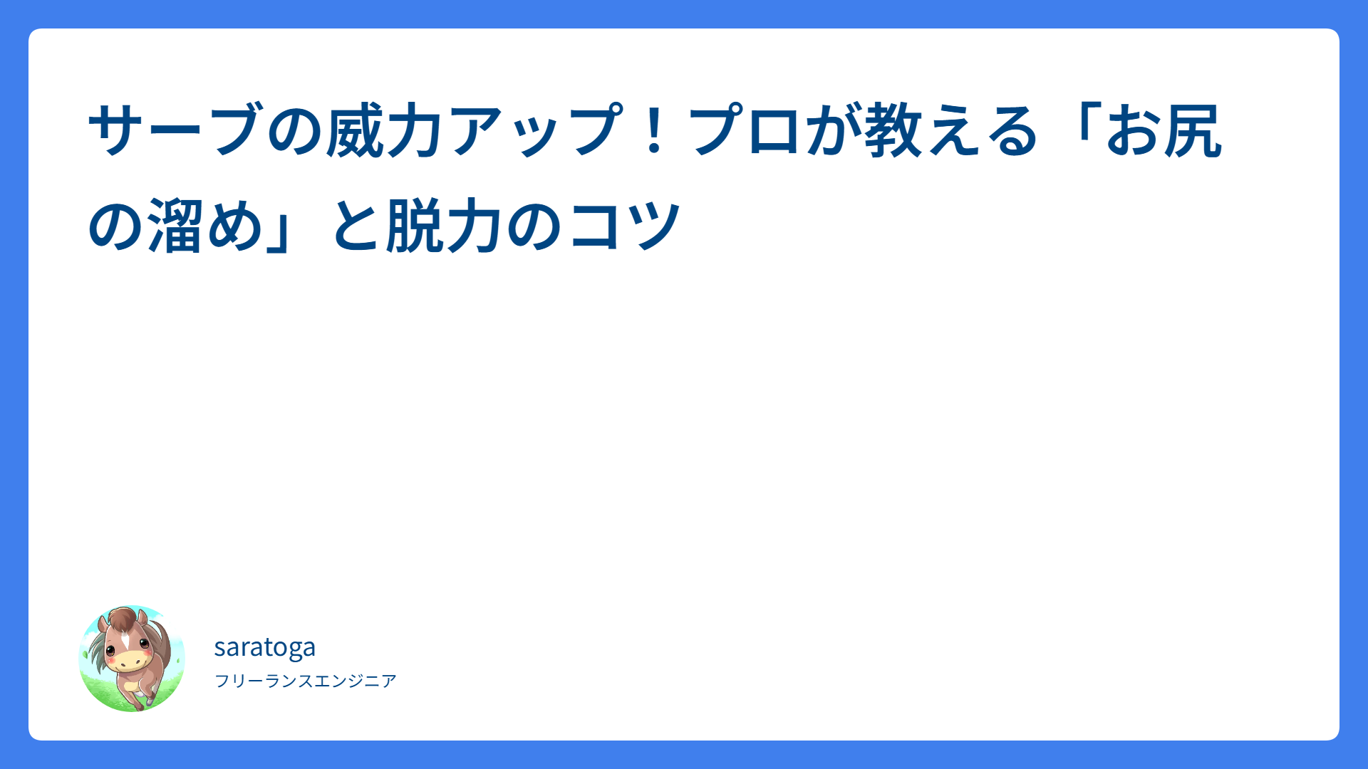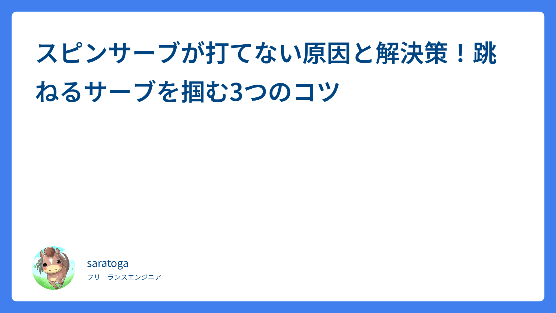 特に「縦スライスサーブ」という、初心者から中級者が真っ先に習得すべき技術にフォーカスしている点が素晴らしいと感じます。