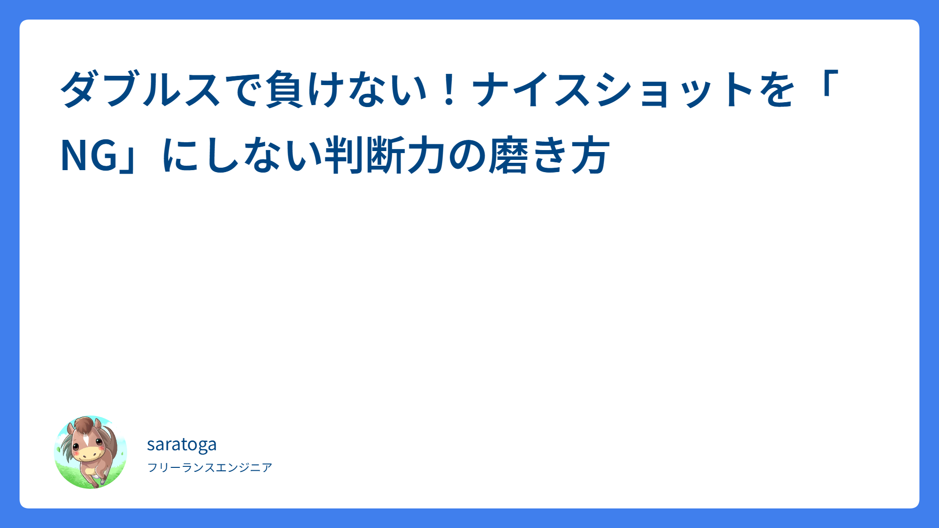 「特別な技術はいらない、基本の準備を丁寧にするだけ」という馬場プロの教えは、まさに一般プレイヤーが目指すべき姿だと感じます。