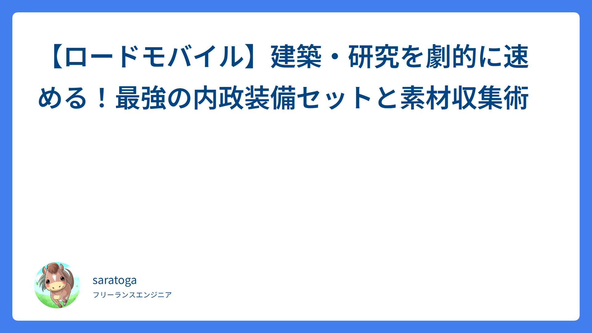 - 装備の切り替え 「センチネルのサークレット(建築速度UP)」や「月の笛(研究速度UP)」などの内政装備を必ず作成しましょう。建築や研究を「ポチる瞬間」に装備していればOKです。
