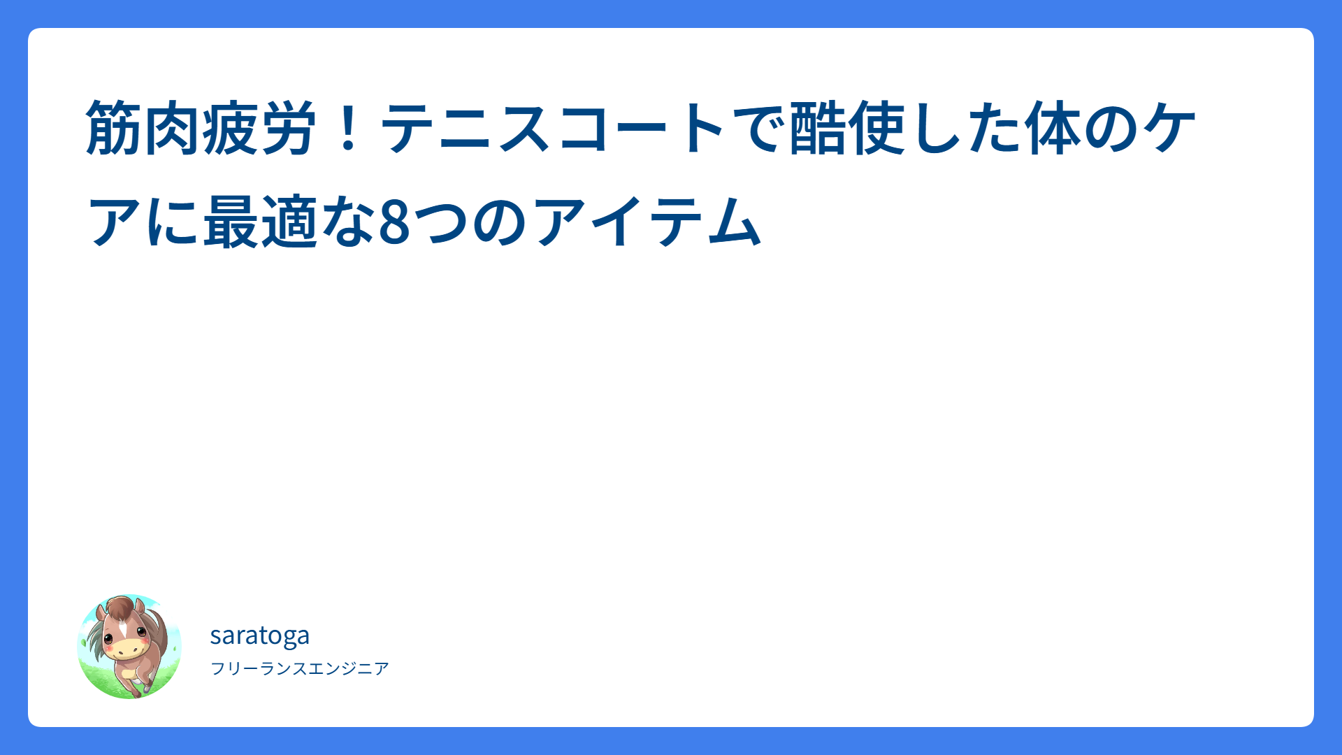 TAG レビュー 【テニス×足底の痛み対策】ザムストのインソールを3年使った感想|選び方とサイズ調整 2026.04.28 テニスアイテム saratogax サラトガ牧場 【実体験あり】テニス後の筋肉痛対策に「アミノバリュー」が手放せない理由|BCAAの力とは? 2025.07.26 テニスアイテム saratogax サラトガ牧場 筋肉疲労!テニスコートで酷使した体のケアに最適な8つのアイテム 2023.12.02 テニスアイテム saratogax サラトガ牧場