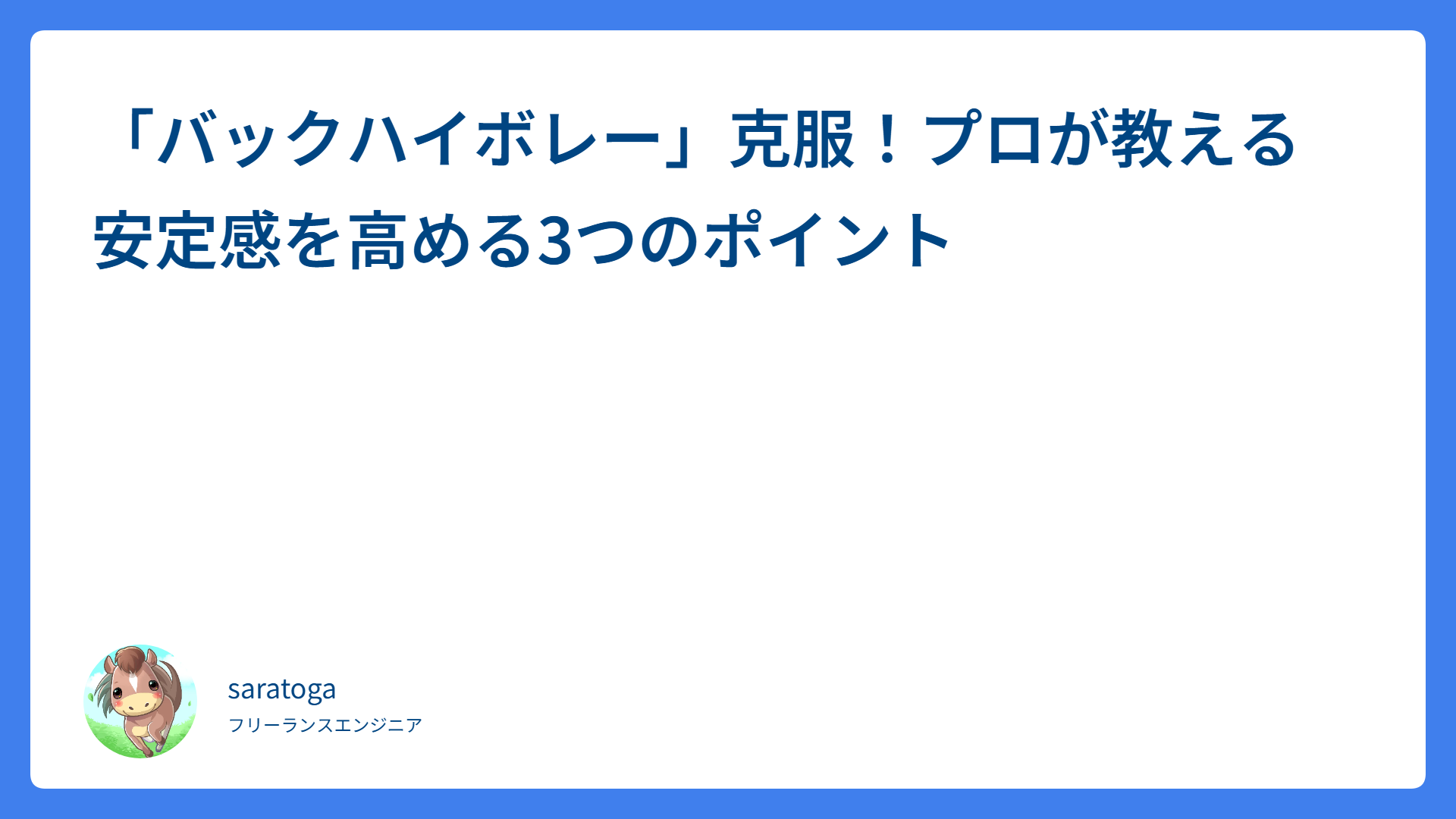 TAG Dr.きょとー 「バックハイボレー」克服!プロが教える安定感を高める3つのポイント 2026.04.07 ボレー・スマッシュ saratogax サラトガ牧場 フォアハンドの「軸」を安定させる!打った後の静止が上達の鍵 2026.04.05 ストローク saratogax サラトガ牧場 ボレーのコントロールを劇的に改善!上半身の「移動」で運ぶ極意 2026.03.27 ボレー・スマッシュ saratogax サラトガ牧場 ダブルス並行陣が変わる!配球の理論と4点練習のコツ 2026.03.22 戦術・体の使い方 saratogax サラトガ牧場 ファーストボレーが安定する!ミスを減らす「面作り」と「足」のコツ 2026.02.01 ボレー・スマッシュ saratogax サラトガ牧場