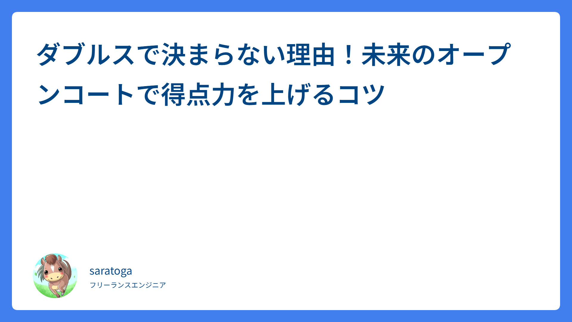 10年テニスを続けてきて痛感するのは、技術よりも「入り方」と「打点の作り方」で結果の8割が決まるということです。