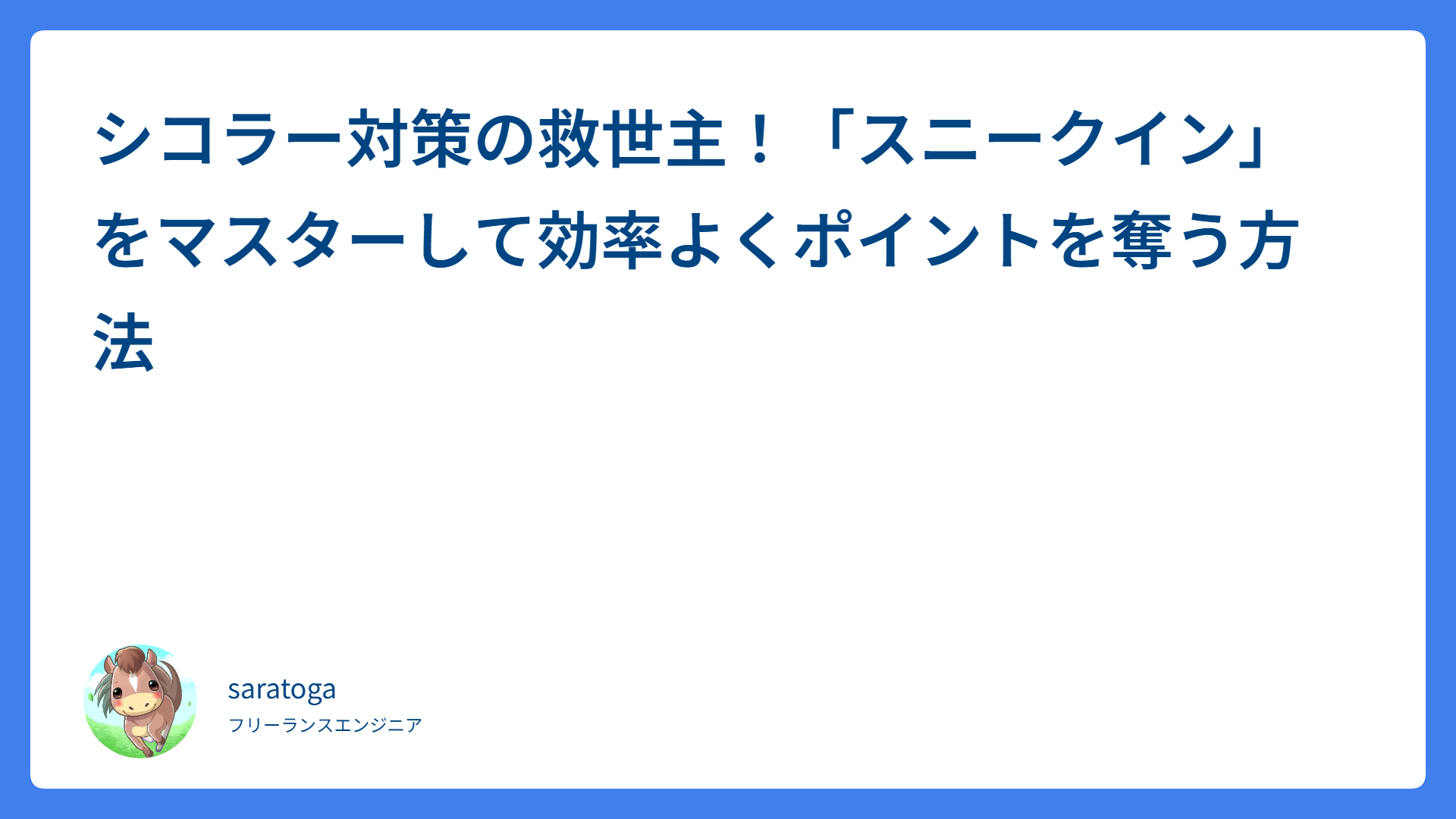 仕事にも趣味にも IT を駆使するフリーランスエンジニア。技術的な TIPS や日々の生活の中で深堀りしてみたくなったことを備忘録として残していきます。