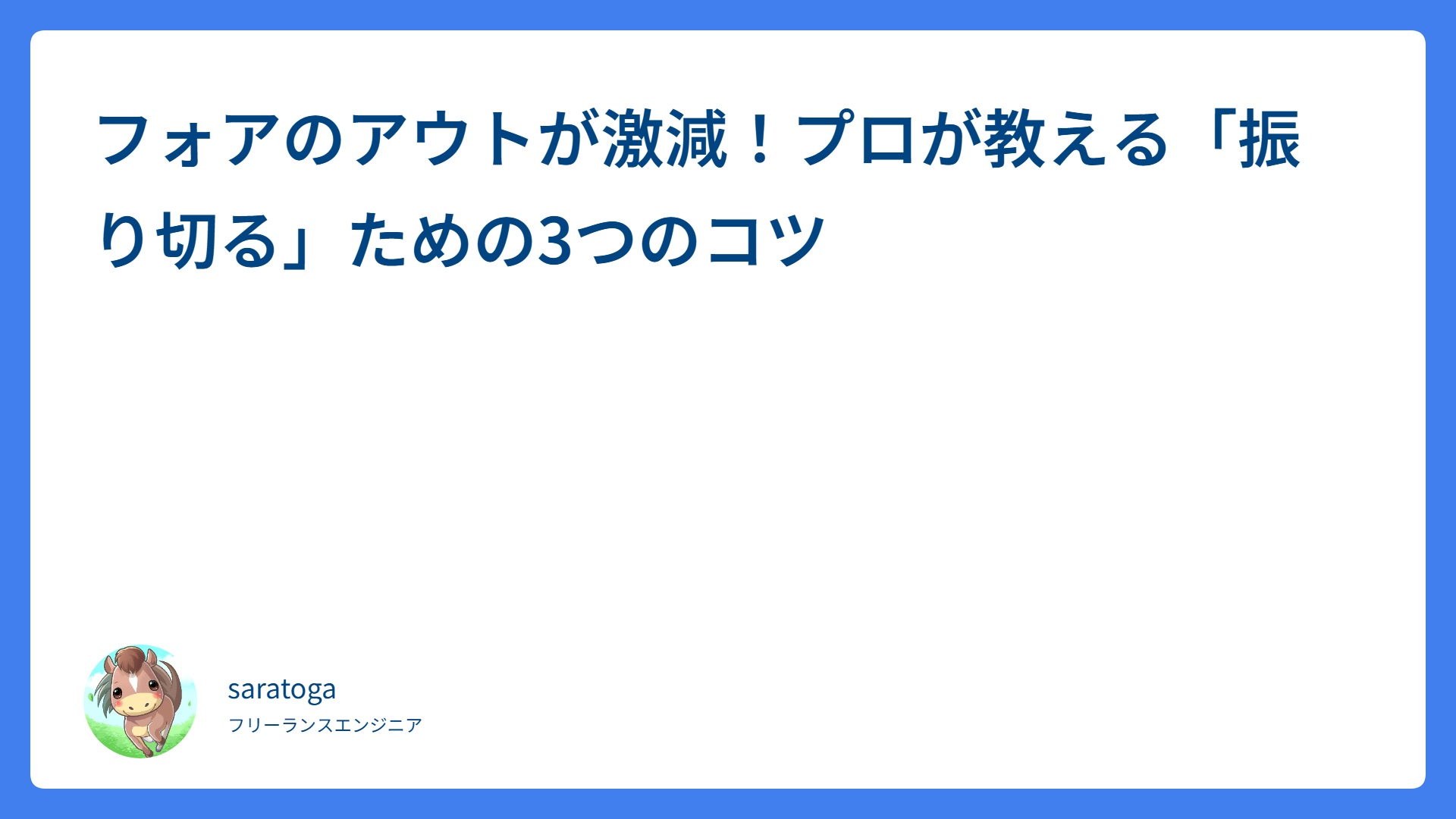 特にチャンスボールで力んでアウトするミスが、体幹主導のスイングに変えたことで大幅に減りました。