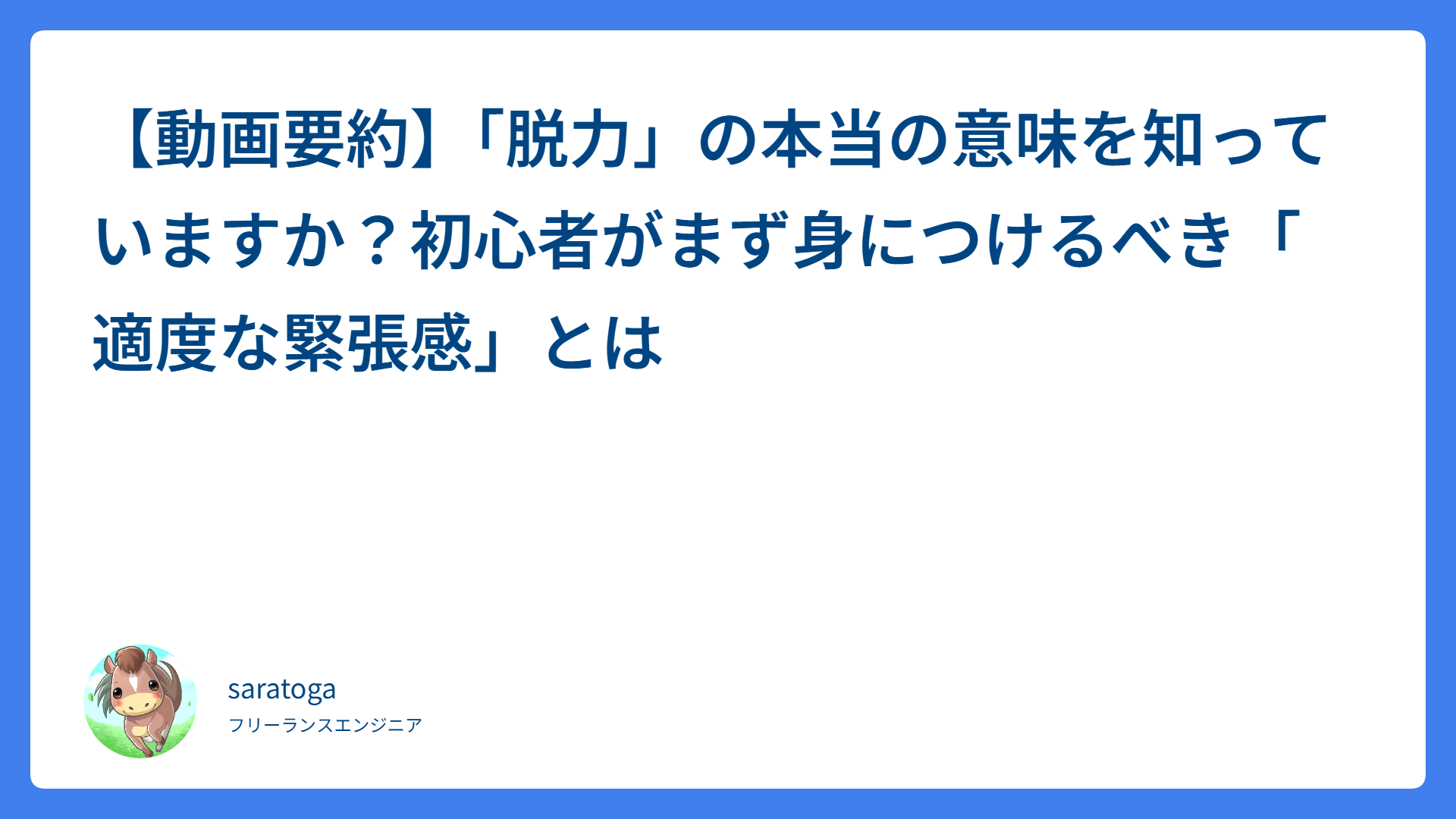 【動画要約】「脱力」の本当の意味を知っていますか?初心者がまず身につけるべき「適度な緊張感」とは
